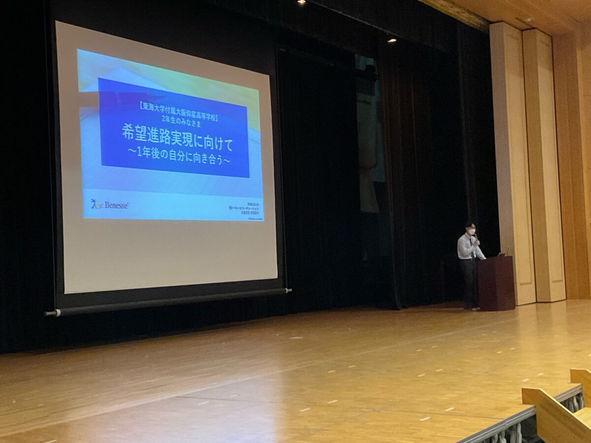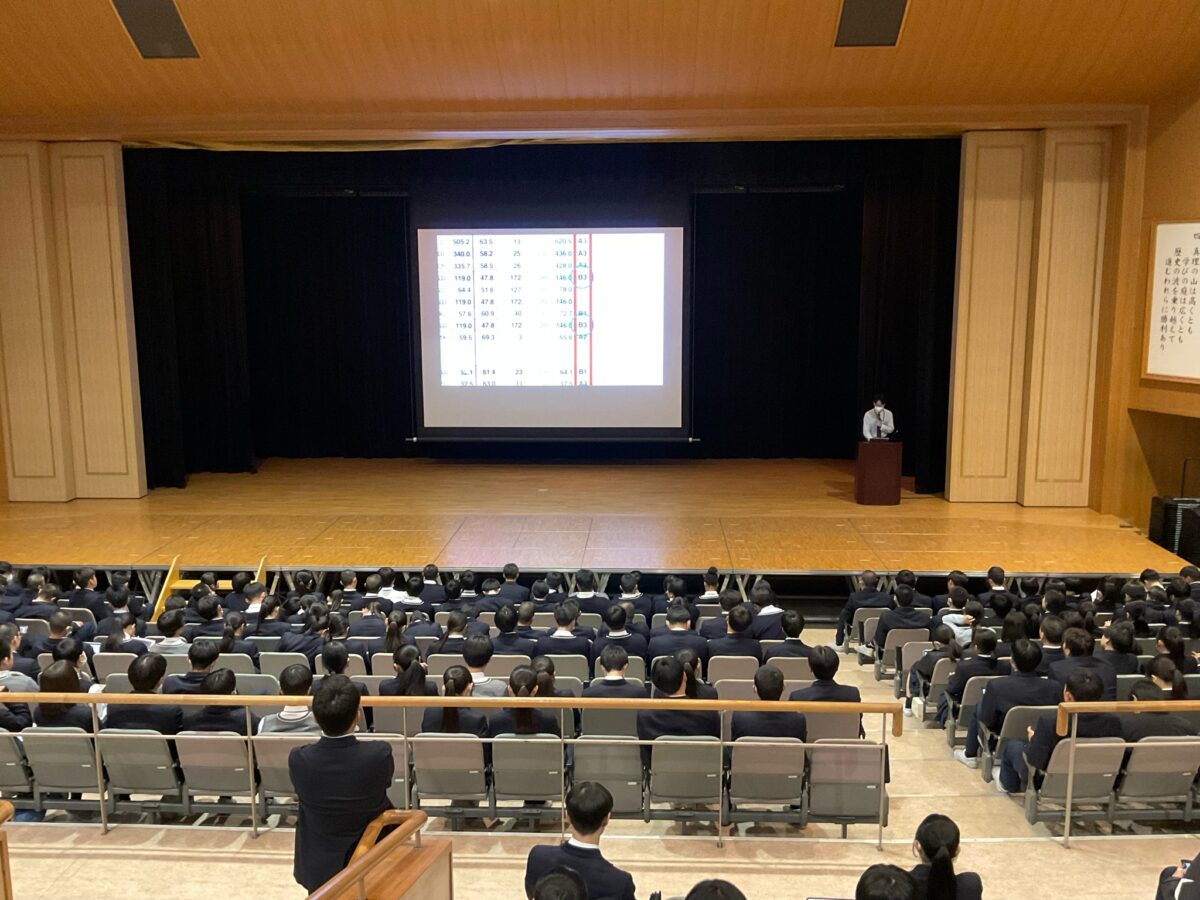 講演では、進路実現に向けた具体的な考え方や、今から取り組むべき学習のポイントなどが紹介され、生徒たちは真剣な表情で耳を傾けていました。また、資料やデータを用いた説明もあり、自分自身の将来について考える貴重な機会となりました。