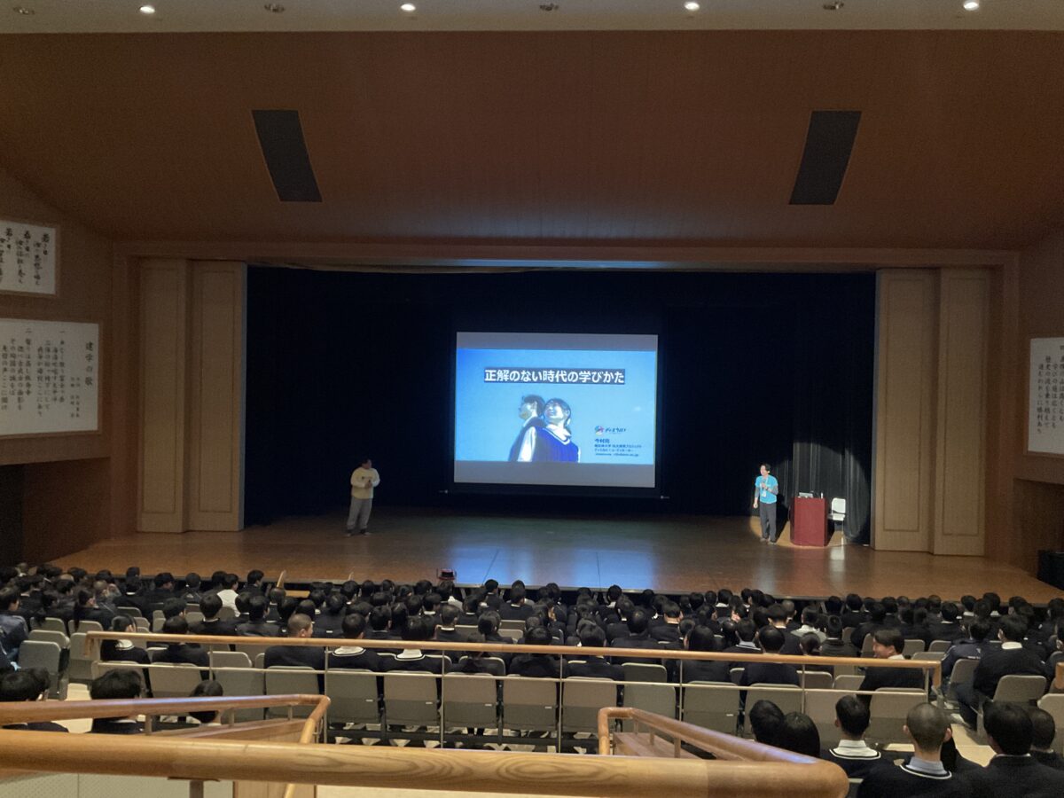 先日、高校1年生を対象に「ディスカバ!」のお二人をお招きし、「正解のない時代を生きる」というテーマで講話をしていただきました。