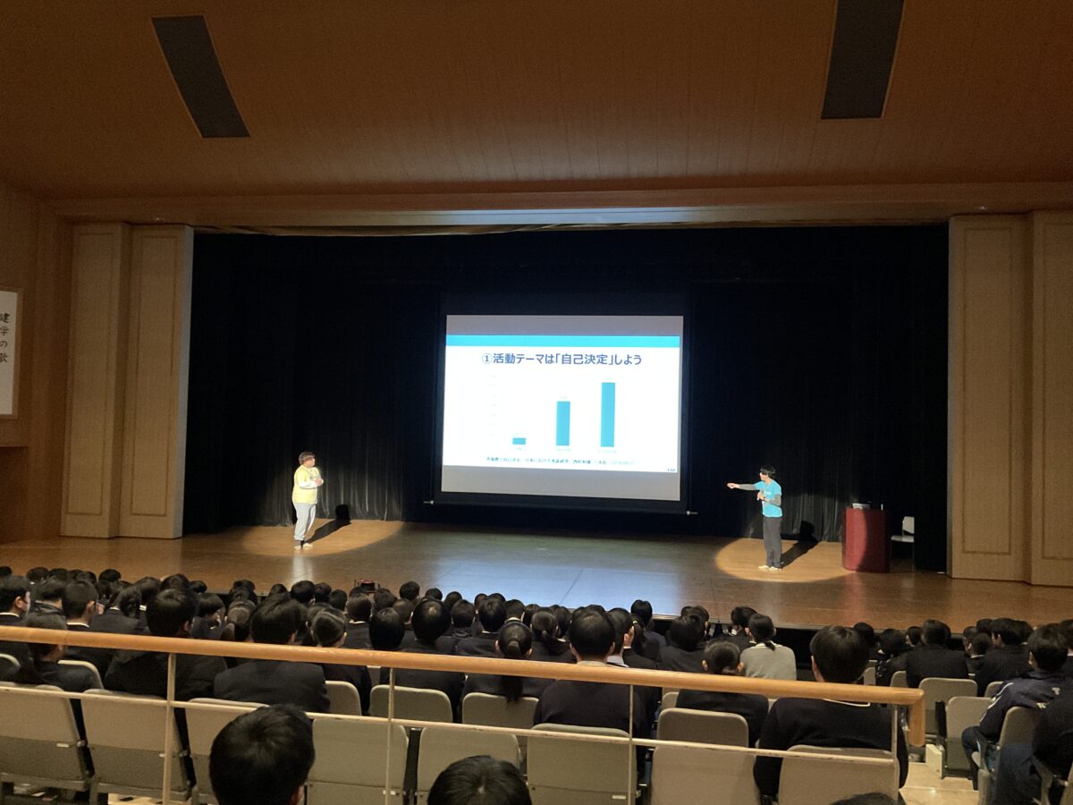 また、現役大学生としてのリアルな体験談や、探究を活かした受験の話などもしていただき、生徒たちにとって非常に刺激的で、これからの学びにつながる貴重な時間となりました。