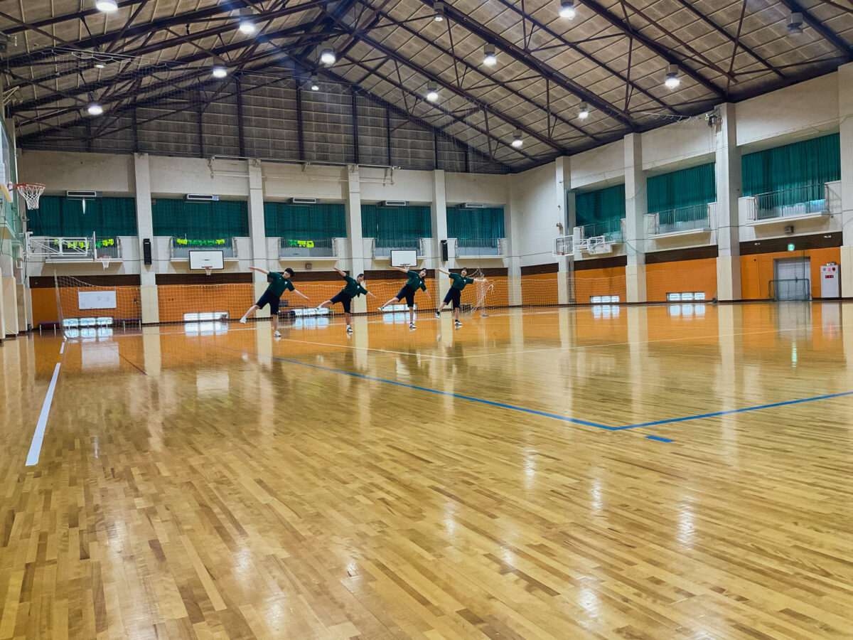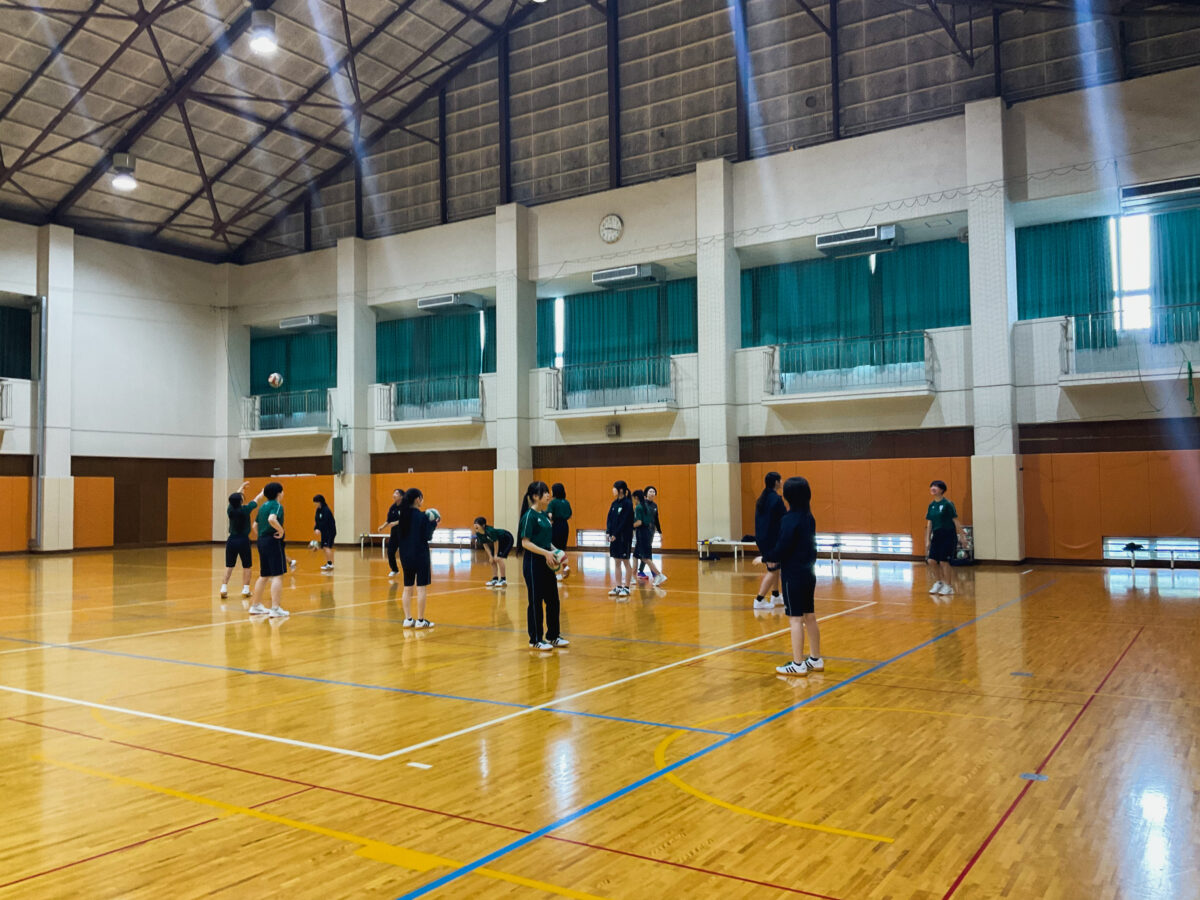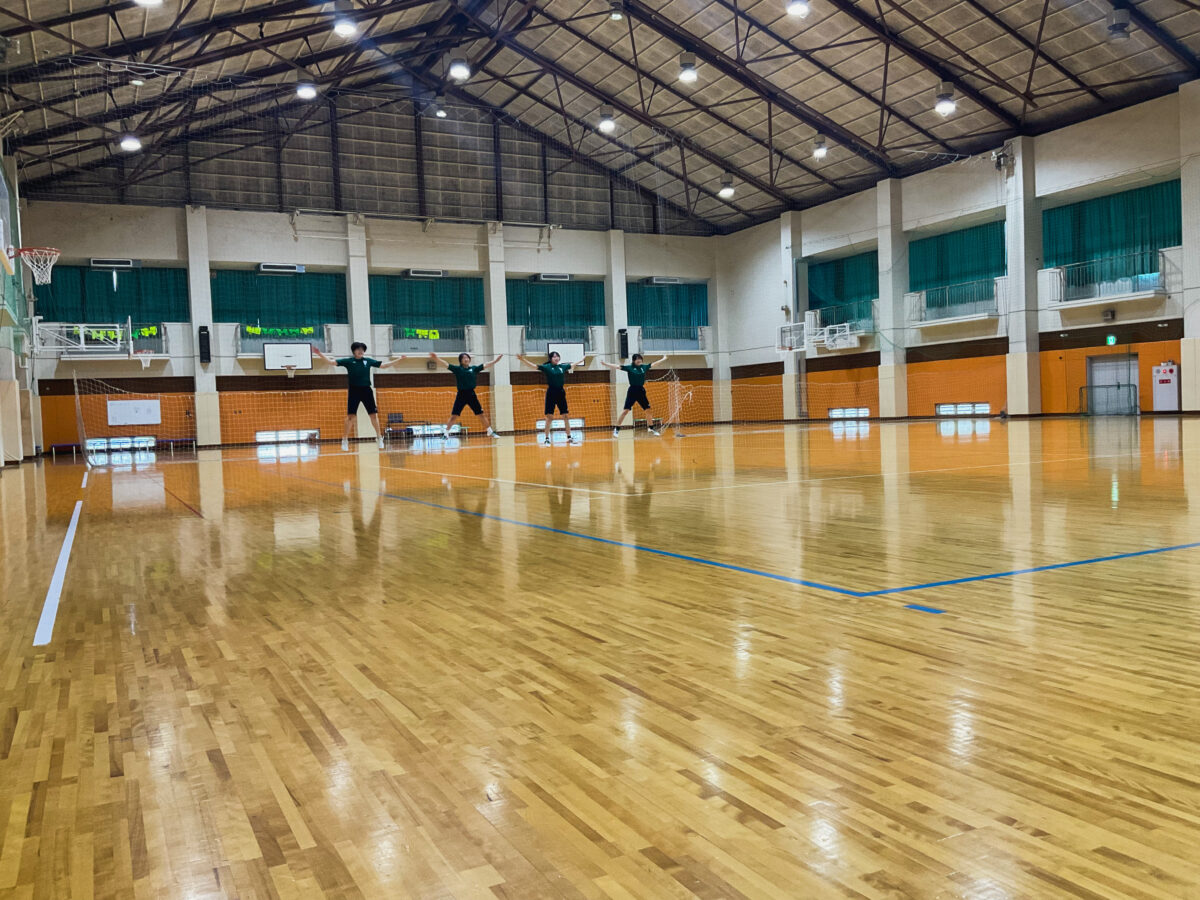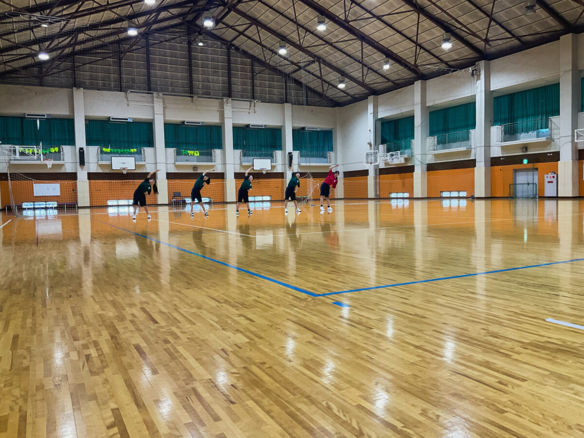 FYI—did you know that Tokai University has a unique warm-up routine? It’s quite different, fun to watch, and difficult to remember! Here are the girls practicing it in their P.E. class. Well done!