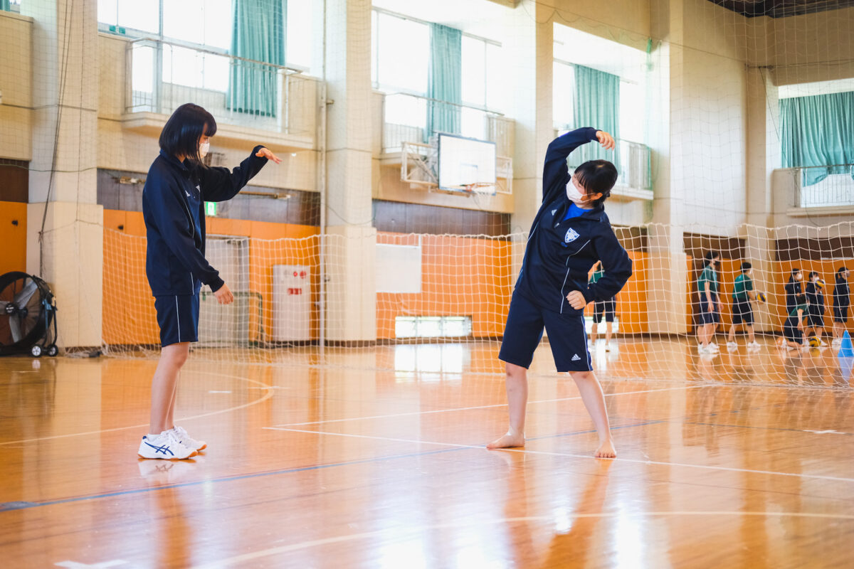 At Tokai University, we have a special warm-up routine for P.E. classes. Most other schools use the regular “radio taiso” routine that is done by many people all over Japan every morning. The routine at Tokai University has many unique movements so the first P.E. classes are spent learning and remembering it. Students who graduated from Gyosei Junior High School already know the routine and are able to help their classmates from other junior high schools learn it. P.E. teachers watched and corrected any wrong moves, and had a test at the end of the class. Do your best, everyone!