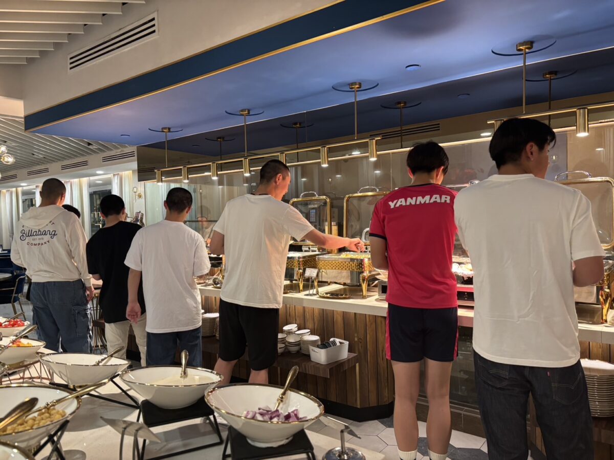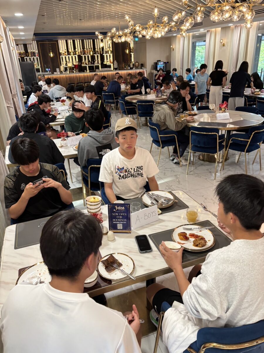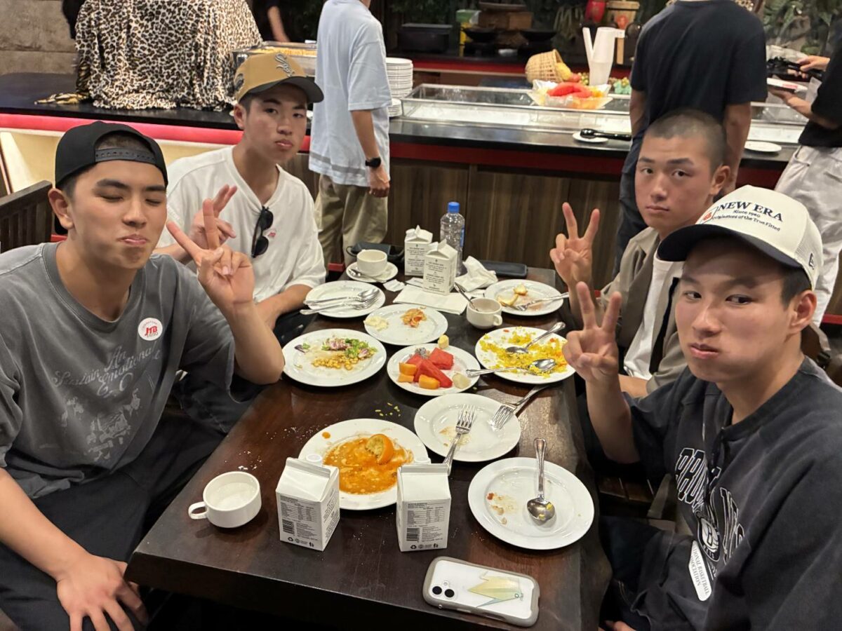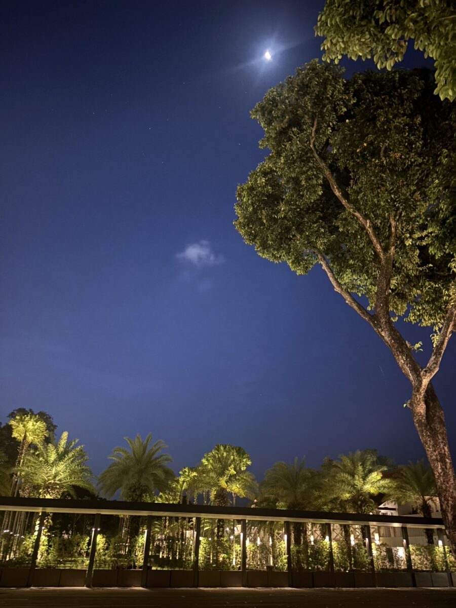 本日は5日目、シンガポールでの最後の朝食です。6:30にまだ月が出ていました。生徒たちは元気に食事しています!