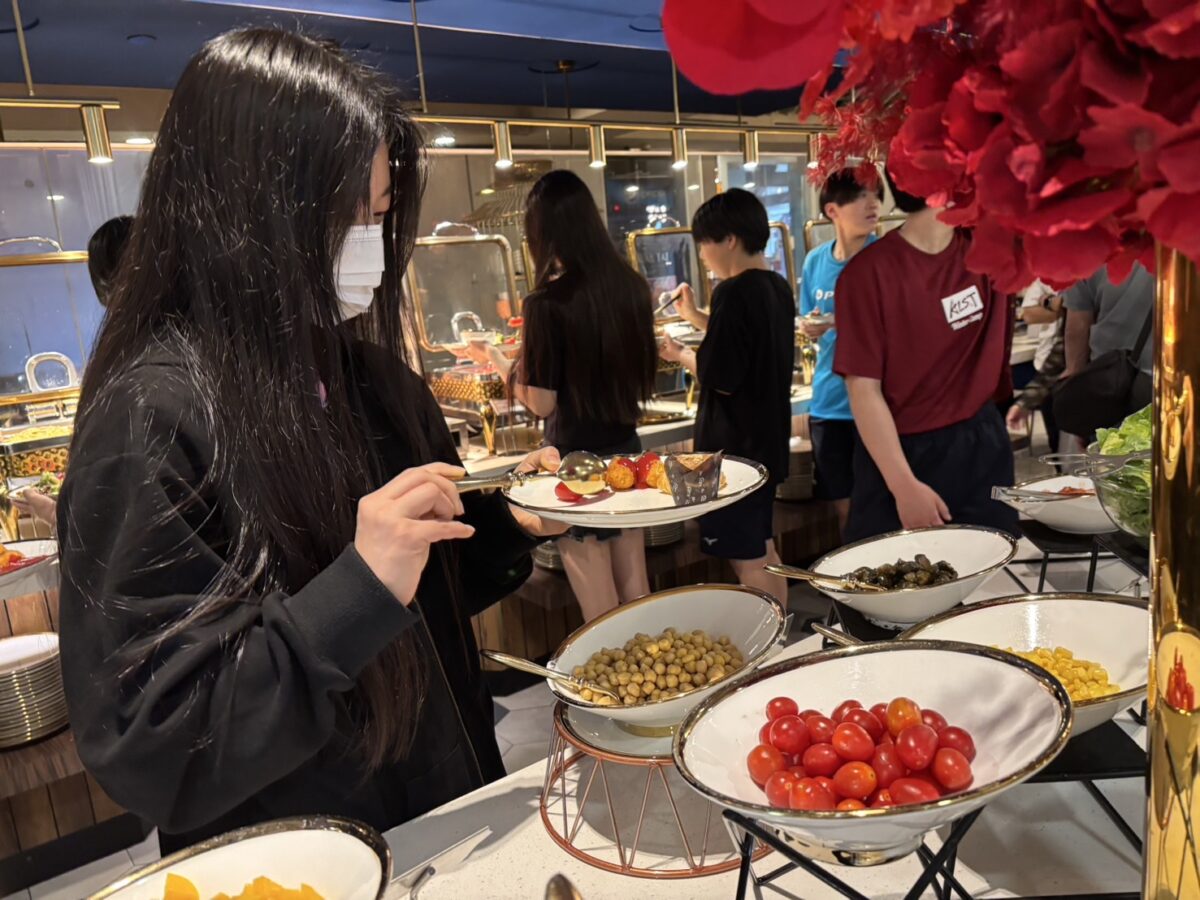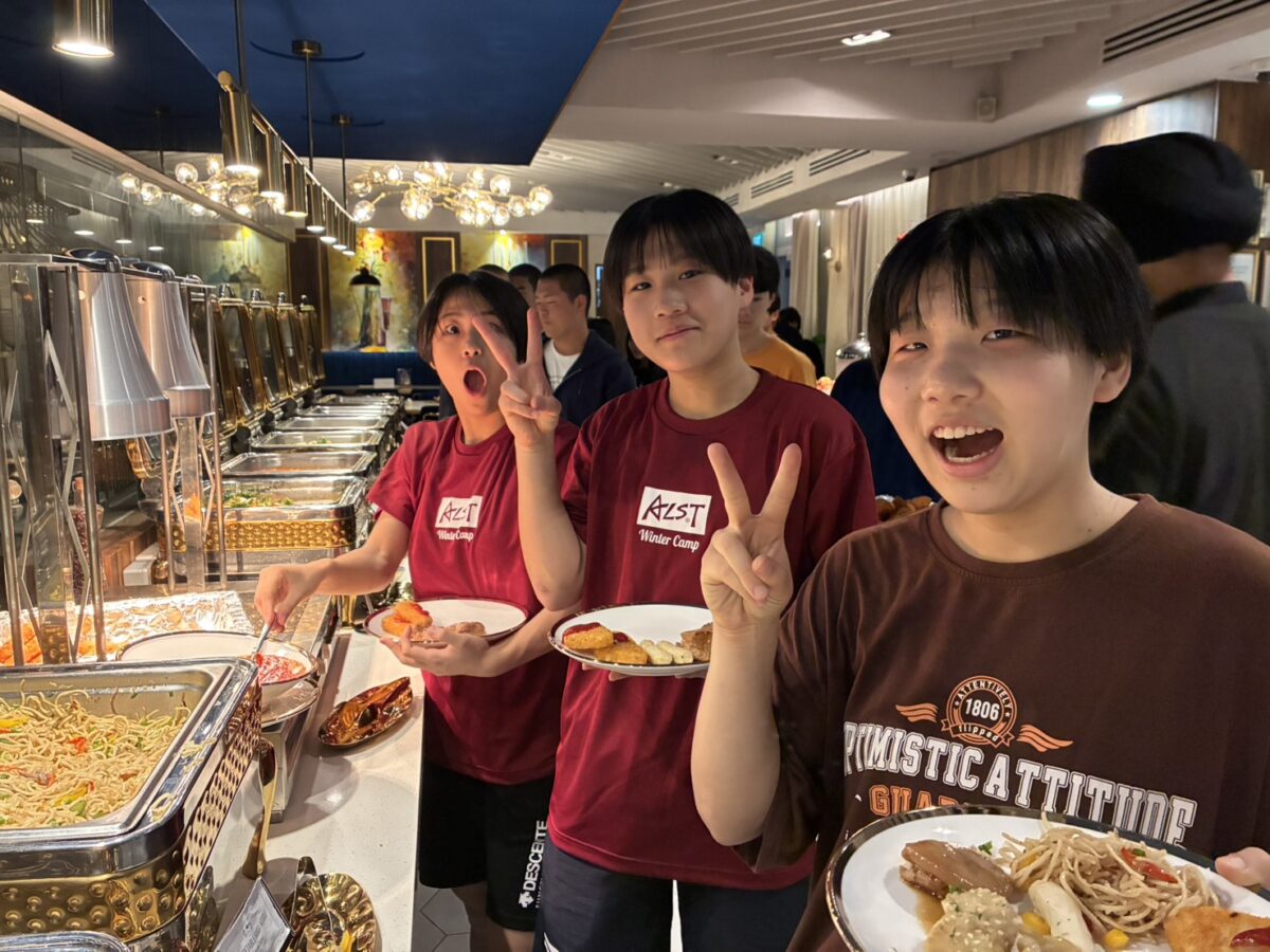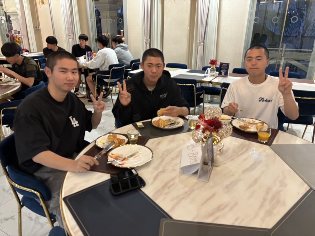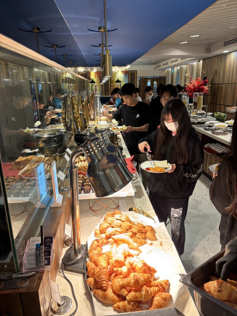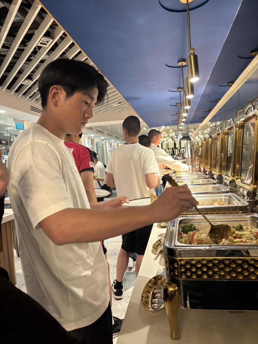 本日は5日目、シンガポールでの最後の朝食です。6:30にまだ月が出ていました。生徒たちは元気に食事しています!