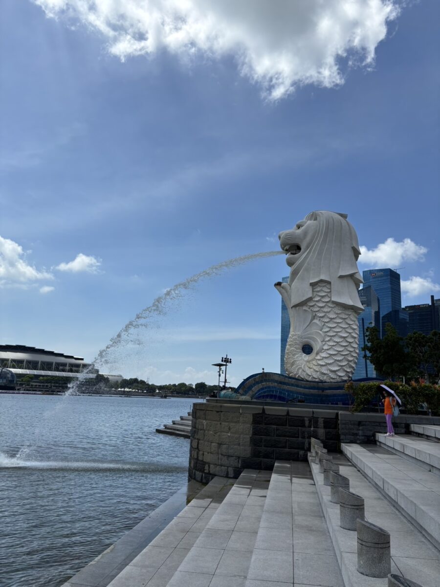 マーライオンは、マーメイドのライオンという意味の造語です。シンガポールとは、ライオンの街。サンスクリット語でシンガはライオン、ポールは街という意味だそうです。