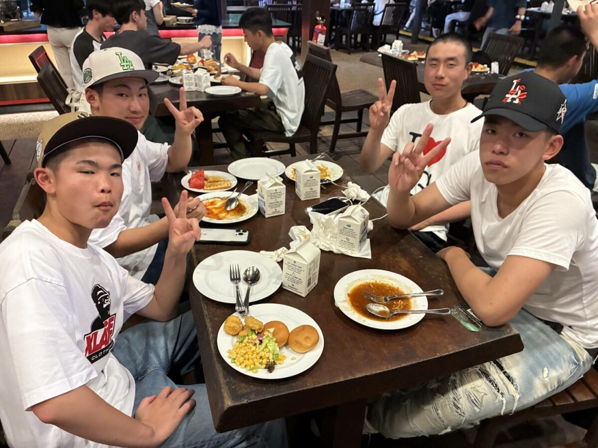 夕食は全員で焼肉の食べ放題です!育ち盛りなのでもりもり食べています。