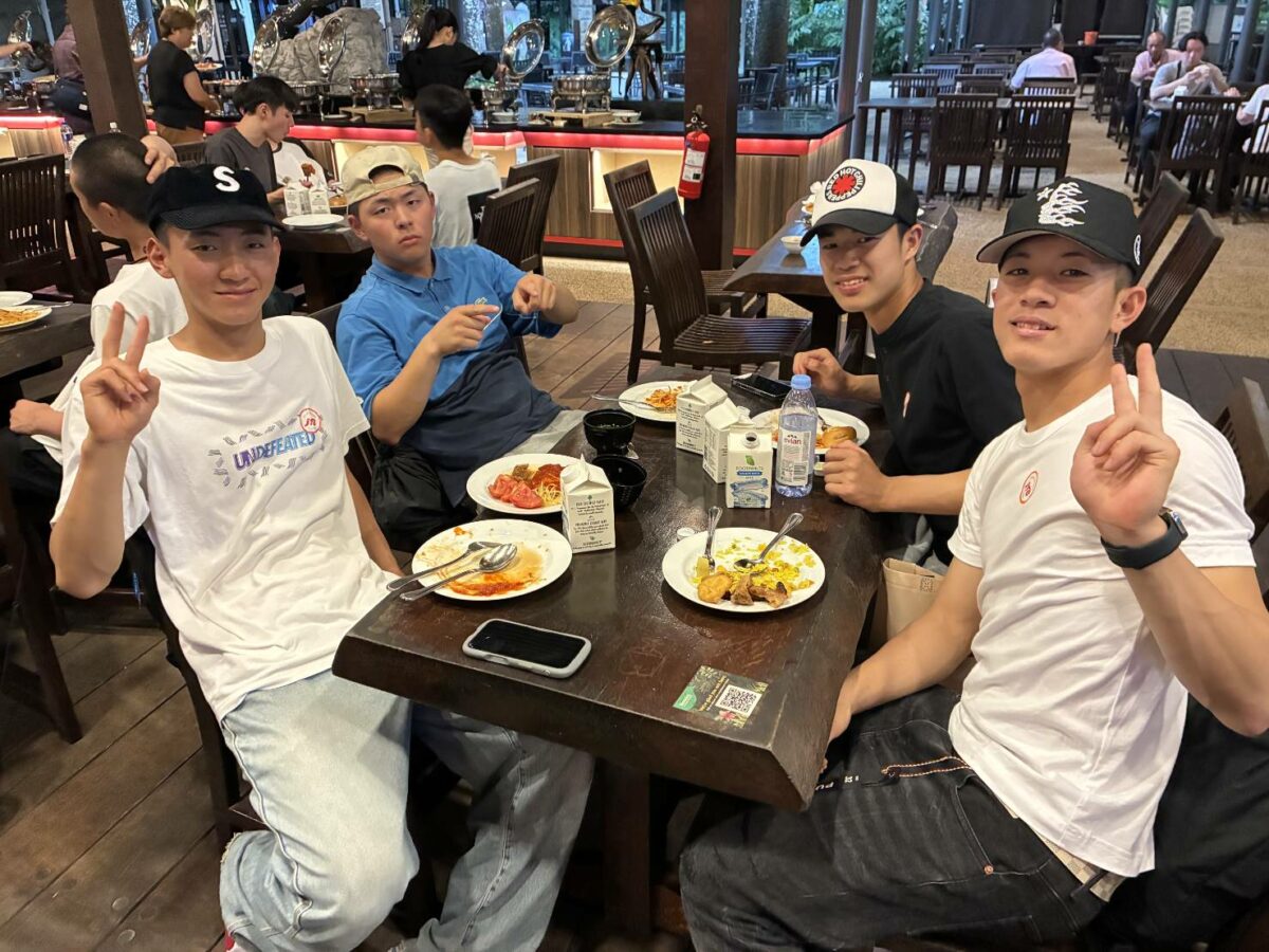 各自で夕食をとり、ホテルに戻ってきました。生徒たちはお土産を手に、今日の思い出を語り合っていました。明日はマレーシアに入国するので、入国手続きのミーティングを行います。マレーシアの文化を体感するのが楽しみですね!
