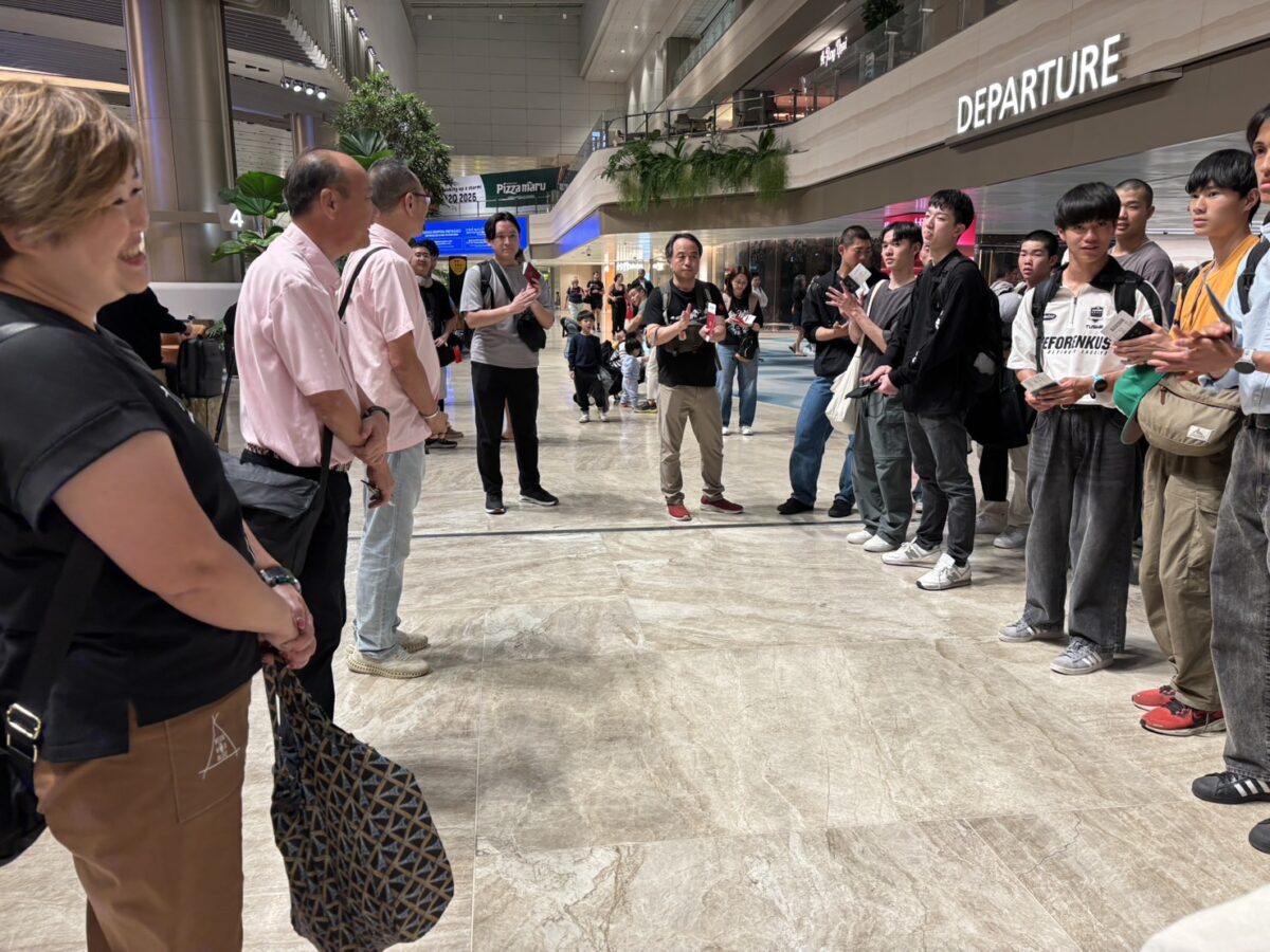 関西国際空港の集合場所に、シンガポールコースのメンバーが元気な姿を見せてくれました!搭乗を前にして、友だち同士で現地のプランを話し合う楽しそうな声も聞こえてきます。