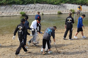生徒たちは、清掃開始の合図とともにドンドンとゴミを回収! 自転車・タイヤ・看板まで