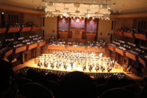 5月31日(金)にザ・シンフォニーホールで音楽鑑賞会を行いました。指揮者の中井章徳さんと、大阪フィルハーモニー交響楽団皆さんが、熱意あふれる表情豊かな演奏を聴かせていただき、オーケストラの魅力を存分に味わいました。また鑑賞会を通じて、演奏会での鑑賞マナーなどを学習しました。