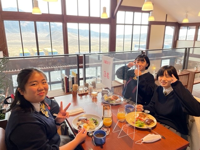 ① 朝食の風景です。みんな元気そうです!これから熊本城に向かいます!