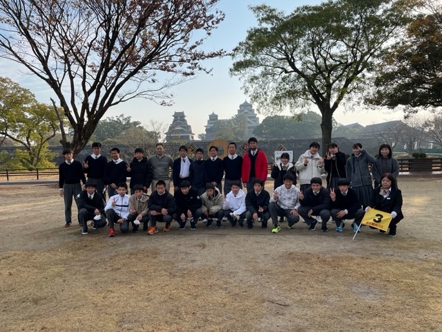 ② 熊本城に到着! 記念写真を撮りました!! このあと小国町に向かって移動します!