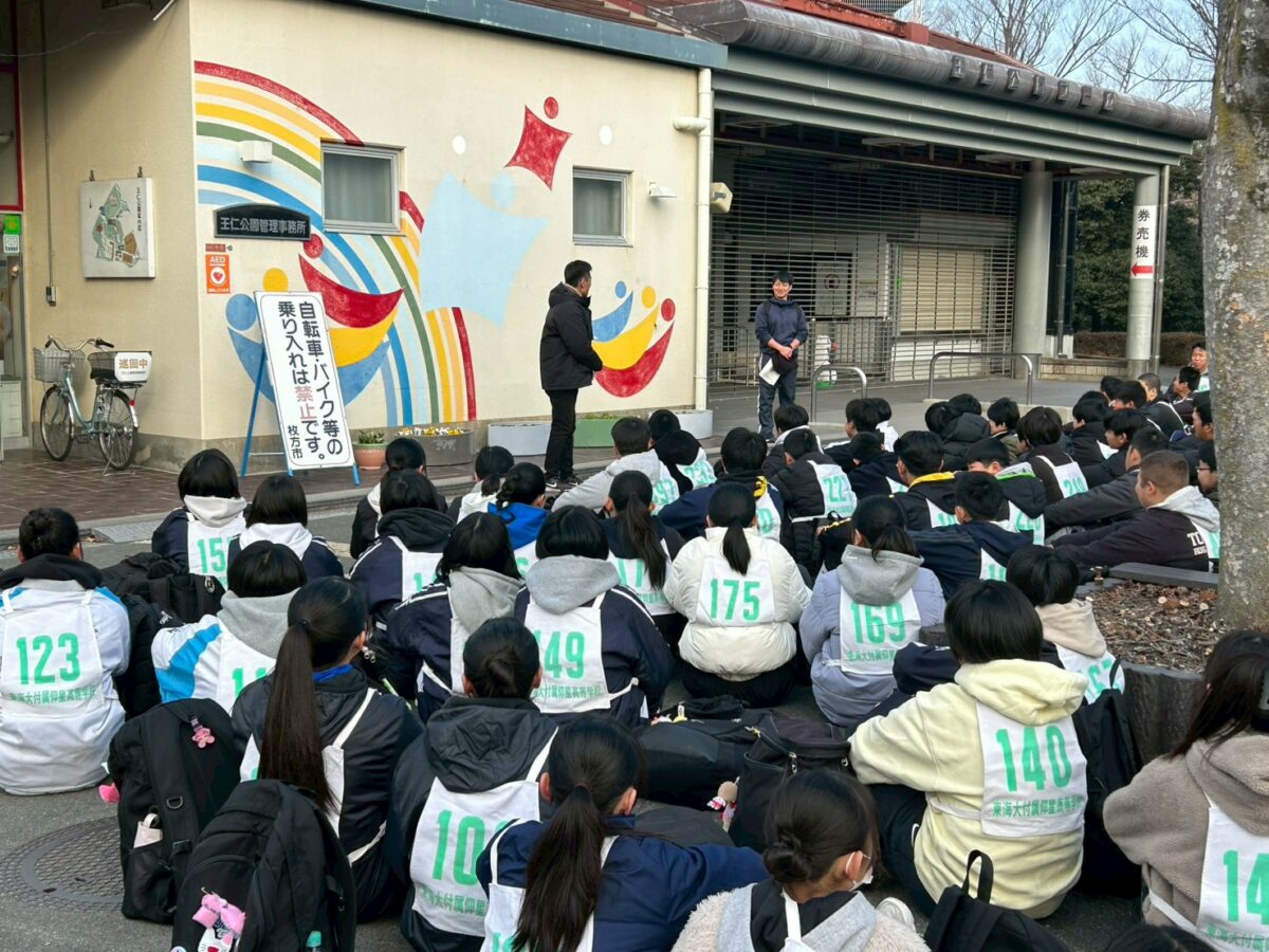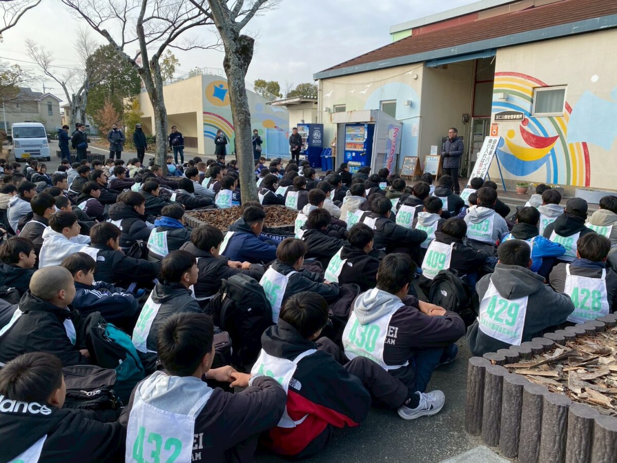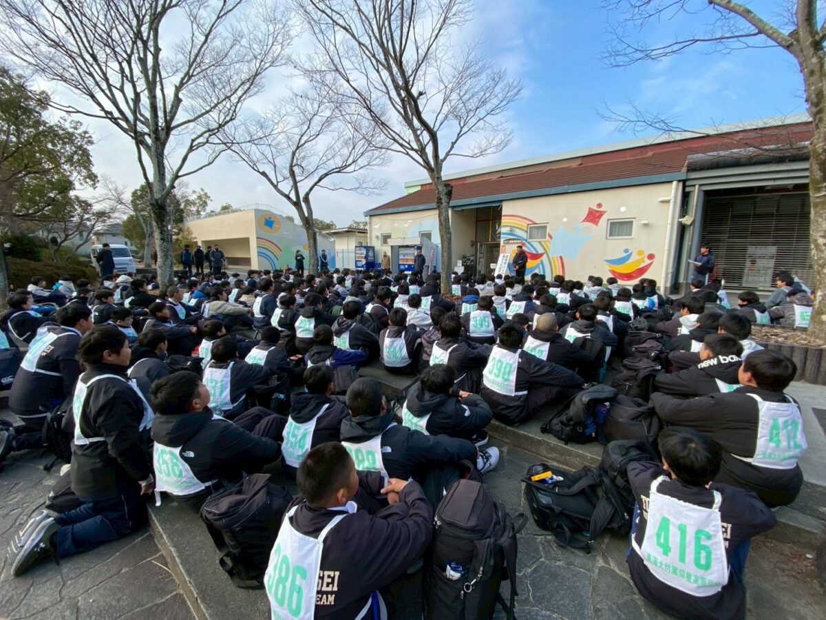 耐寒行進が始まりました!晴天に恵まれ、総勢198名が王仁公園から宇治駅に向けてスタートしました!
